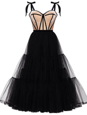 A-Line Cocktail Dresses Party Dress Cocktail Party Formal Evening Tea Length Sleeveless Sweetheart Wednesday Addams Family Tulle with Pleats Tiered - US 2 / UK 6 / EU 32