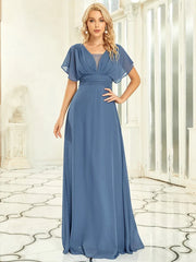 A-Line Empire Waist Chiffon Long Evening Party Dress - Dusty Navy / US 2 / UK 6 / EU 32