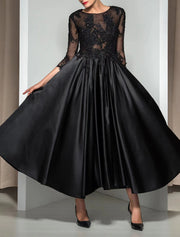A-Line Evening Gown Elegant Dress Wedding Guest Cocktail Party Ankle Length 3/4 Length Sleeve Illusion Neck Fall Wedding Guest Satin with Appliques