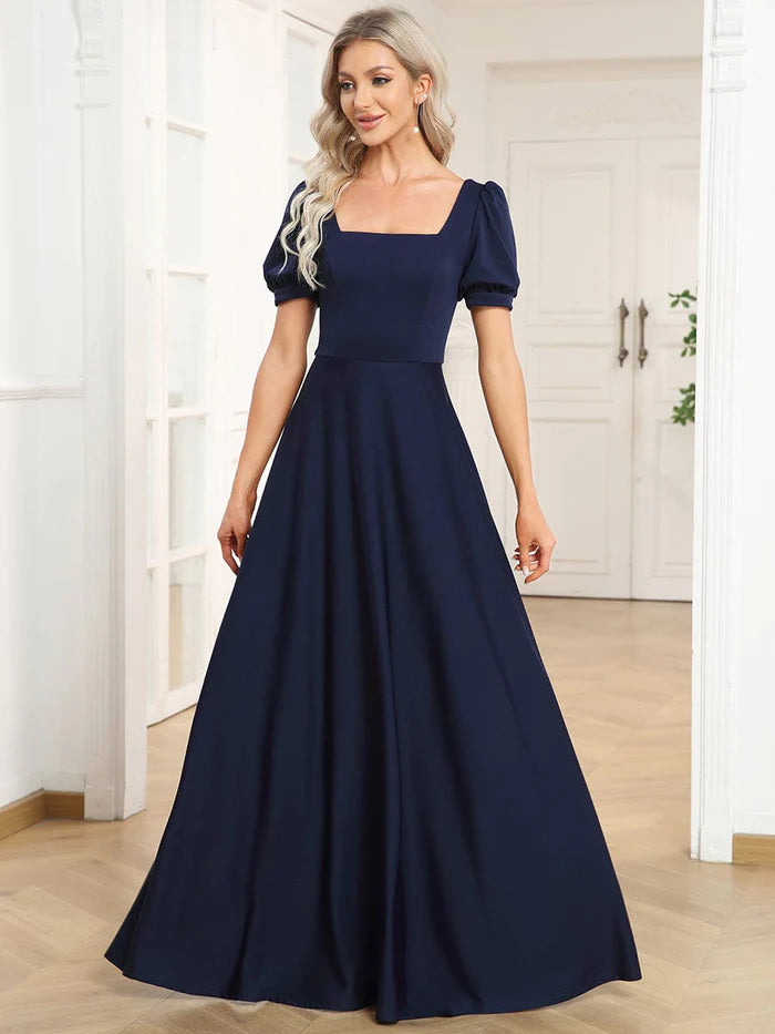 A-Line Floor-Length Square Neck Caged Back Evening Dress