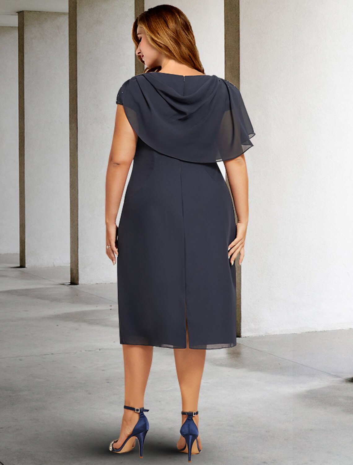A-Line Plus Size Curve Mother of the Bride Dresses Plus Size Dress Formal Tea Length Short Sleeve Jewel Neck Chiffon with Ruched Pearls Ruffles - US 2 / UK 6 / EU 32