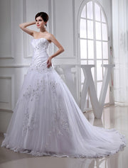 A-Line/Princess Beading Long Sleeveless Strapless Tulle Taffeta Wedding Dresses - US 2 / UK 6 / EU 32
