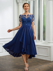 A-Line/Princess Chiffon Applique Bateau 1/2 Sleeves Tea-Length Mother of the Bride Dresses