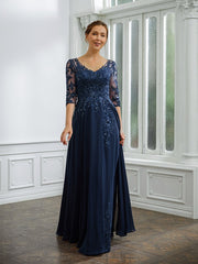 A-Line/Princess Chiffon Applique V-neck 3/4 Sleeves Floor-Length Mother of the Bride Dresses