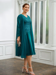 A-Line/Princess Chiffon Ruched V-neck Short Sleeves Knee-Length Mother of the Bride Dresses