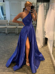 A-Line/Princess Satin Beading One-Shoulder Sleeveless Sweep/Brush Train Dresses - US 2 / UK 6 / EU 32