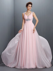 A-Line/Princess Straps Beading Sleeveless Long Chiffon Dresses
