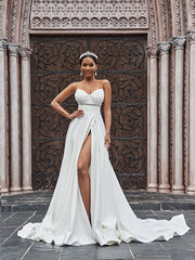 A-Line/Princess Stretch Crepe Ruffles Sleeveless Sweetheart Court Train Wedding Dresses