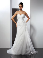 A-Line/Princess Sweetheart Applique Sleeveless Long Organza Wedding Dresses - US 2 / UK 6 / EU 32