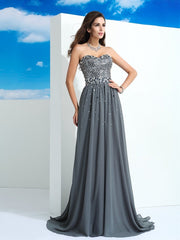 A-Line/Princess Sweetheart Beading Sleeveless Long Chiffon Dresses