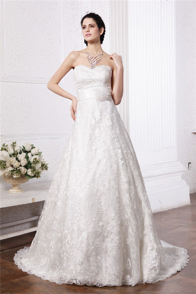 A-Line/Princess Sweetheart Sleeveless Sash Long Lace Wedding Dresses