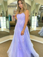A-Line/Princess Tulle Applique Spaghetti Straps Sleeveless Sweep/Brush Train Dresses - US 2 / UK 6 / EU 32