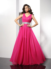 A-Line/Princess V-neck Paillette Sleeveless Long Chiffon Dresses