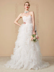 A-Line Wedding Dresses Sweetheart Neckline Sweep / Brush Train Tulle Over Lace Sleeveless Wedding Dress in Color Open Back with Sashes / Ribbons / Removable train