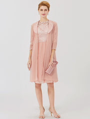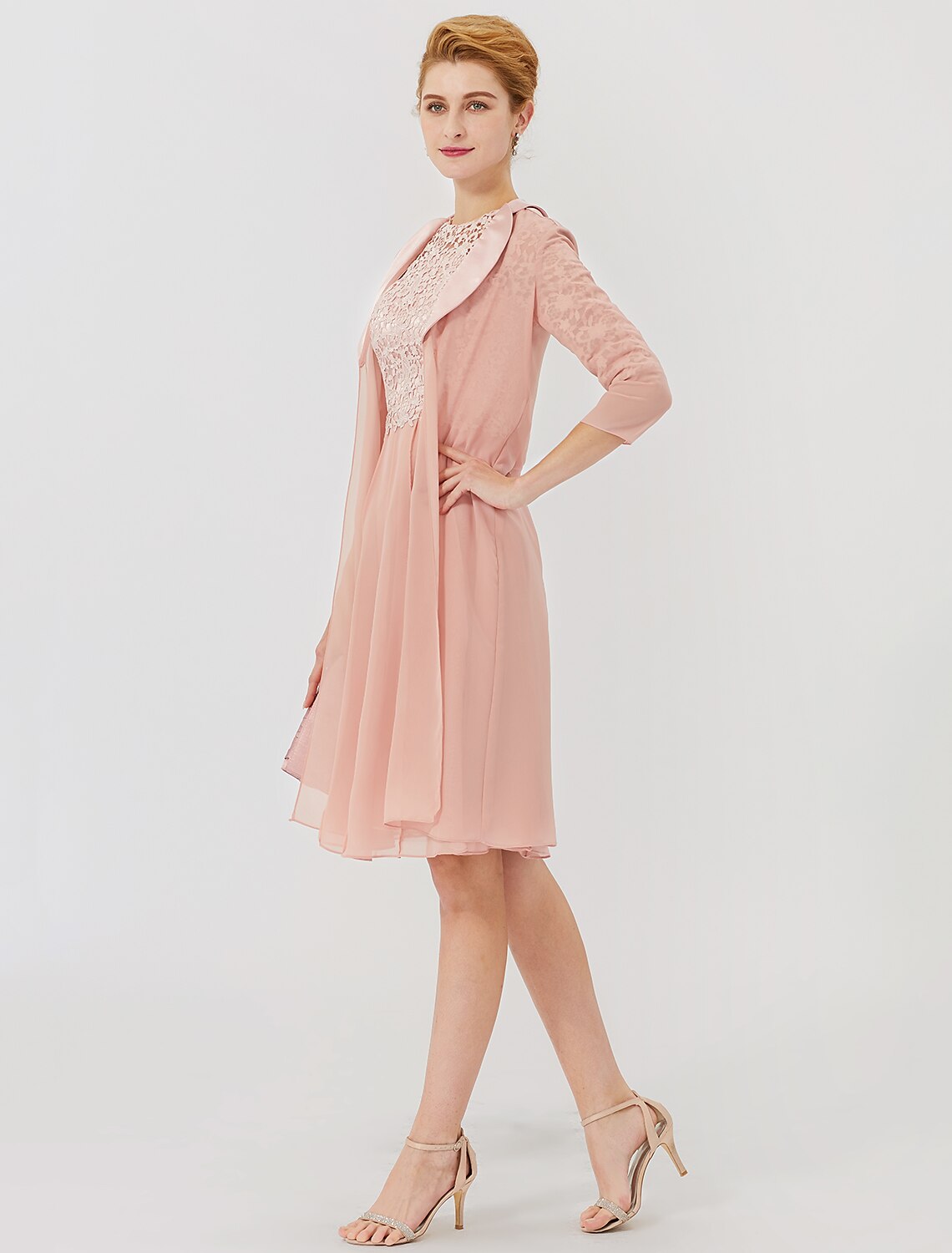 Ball Gown Mother of the Bride Dress Formal Classic & Timeless Elegant & Luxurious Convertible Dress Illusion Neck Knee Length Chiffon Floral Lace 3/4 Length Sleeve with Crystal Brooch