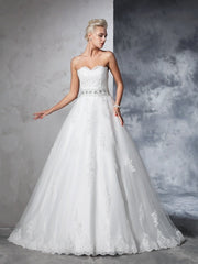 Ball Gown Sweetheart Applique Sleeveless Long Net Wedding Dresses