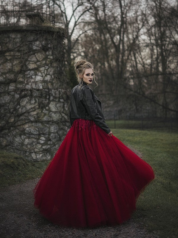 Ball Gown Tulle Spaghetti Straps Applique Sweep/Brush Train Sleeveless Dresses - US 2 / UK 6 / EU 32