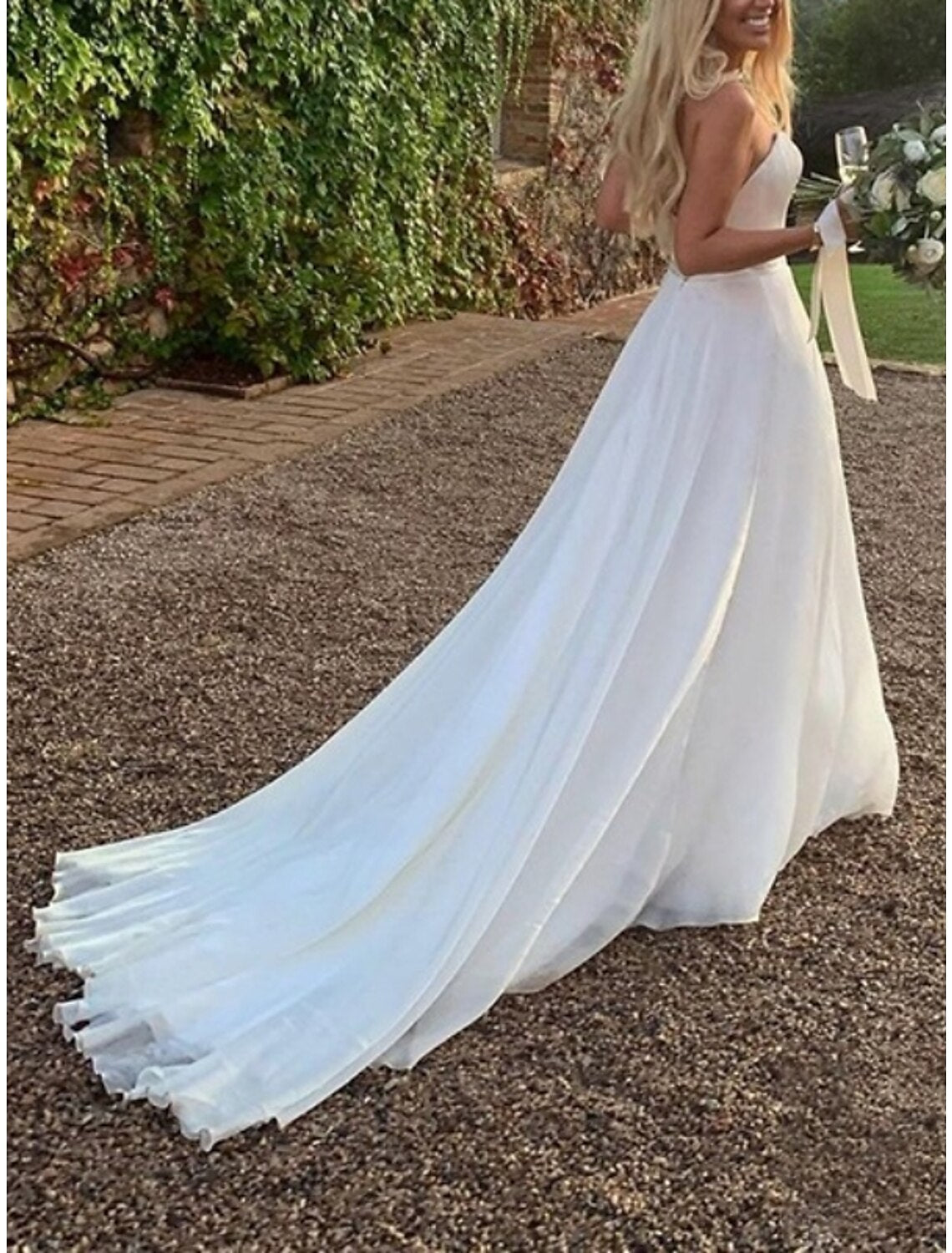 Beach Boho Wedding Dresses Sheath / Column Sweetheart Sleeveless Court Train Satin Bridal Gowns With Pleats - US 2 / UK 6 / EU 32