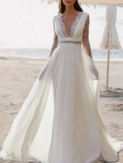 Beach Open Back Boho Wedding Dresses A-Line V Neck Sleeveless Floor Length Chiffon Bridal Gowns With Pleats Summer Fall Wedding Party , Women's Clothing