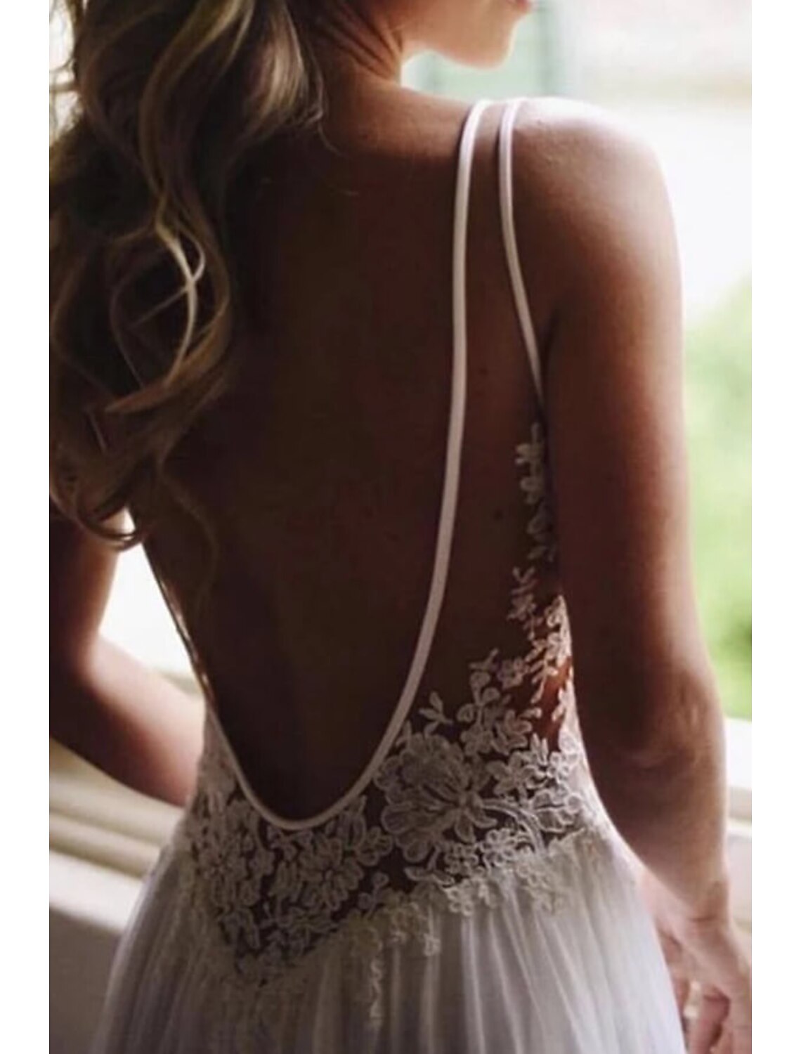Beach Wedding Dresses A-Line V Neck Sleeveless Sweep / Brush Train Chiffon Bridal Gowns With Appliques