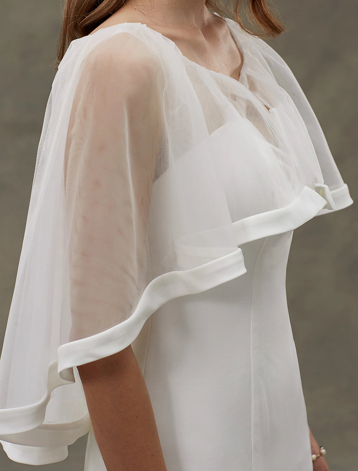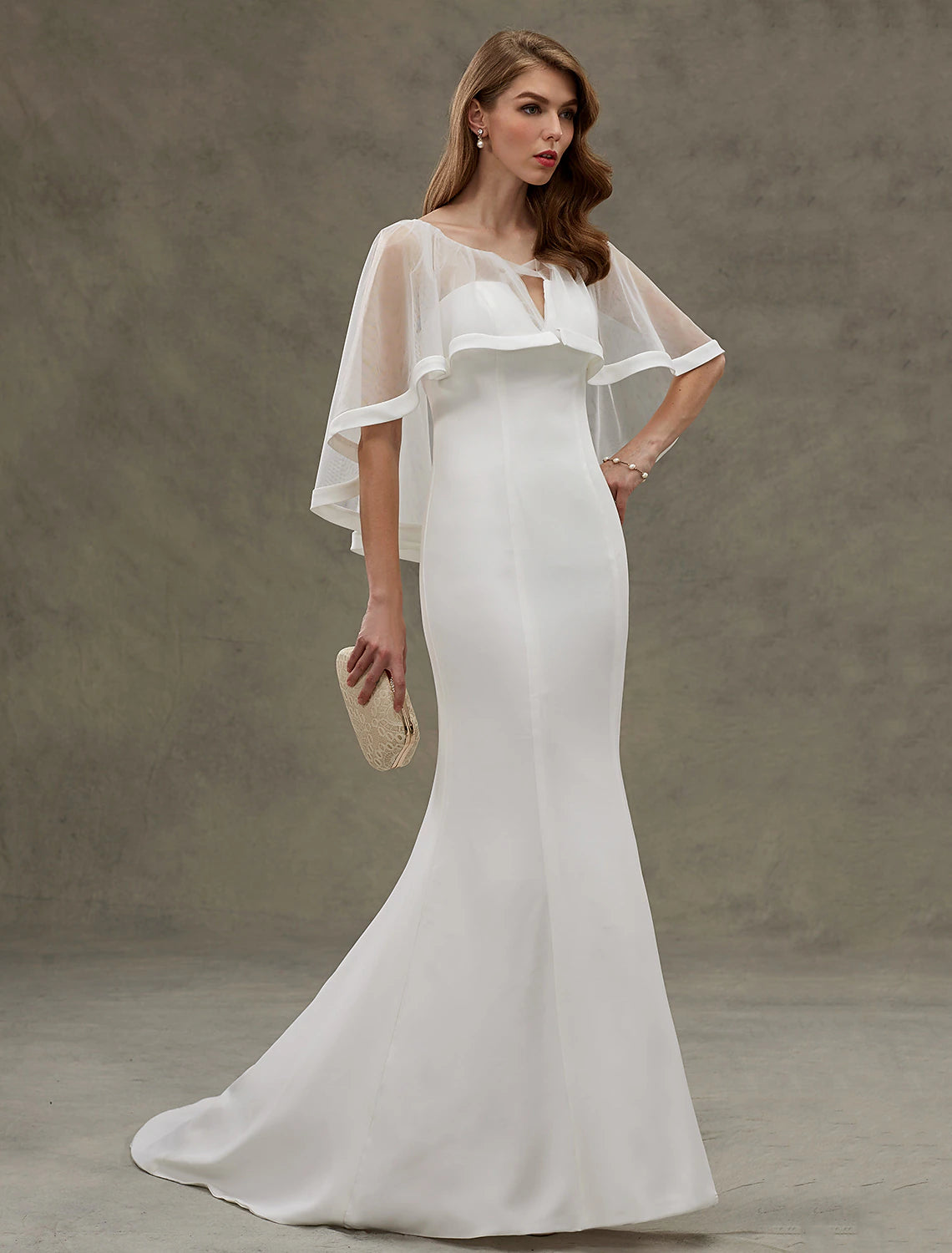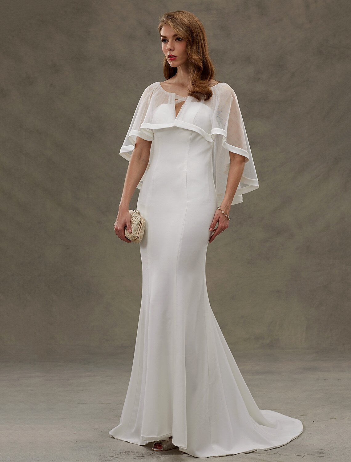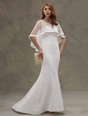 Beach Wedding Dresses Mermaid / Trumpet Scoop Neck Half Sleeve Sweep / Brush Train Chiffon Bridal Gowns With Tiered - US 2 / UK 6 / EU 32