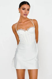 Beautiful satin mini adjustable shoulder straps, tight corset, neck tie, lace trim, back zipper, Homecoming Dresses - US 2 / UK 6 / EU 32