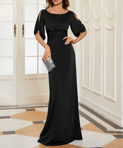 Black Elegant Wholesale Chiffon Fishtail Prom Dress With Round Neck