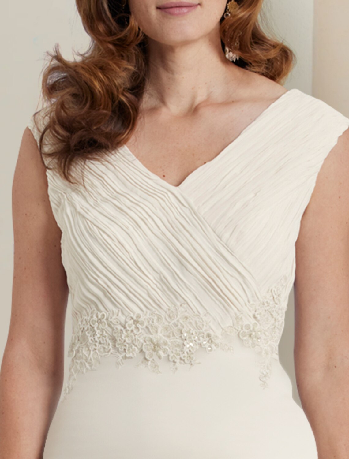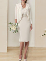 Bridal Shower Little White Dresses Mature Wedding Dresses Sheath / Column V Neck Sleeveless Knee Length Chiffon Bridal Gowns With Ruched Solid Color - US 2 / UK 6 / EU 32