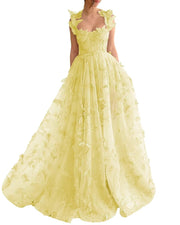 Butterflies Dress Long Tulle Prom Dress Ball Gown Evening Party Wedding Guest Formal Dress Slit