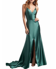 Charmeuse Green Spaghetti-Strap Simple Prom Dress with Slit