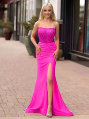 Charming mermaid off shoulder satin and sleeveless beaded lace up back Prom Dresses