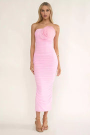 Charming strapless chest with floral pattern, back with zipper pleats, tight silhouette Prom Dresses