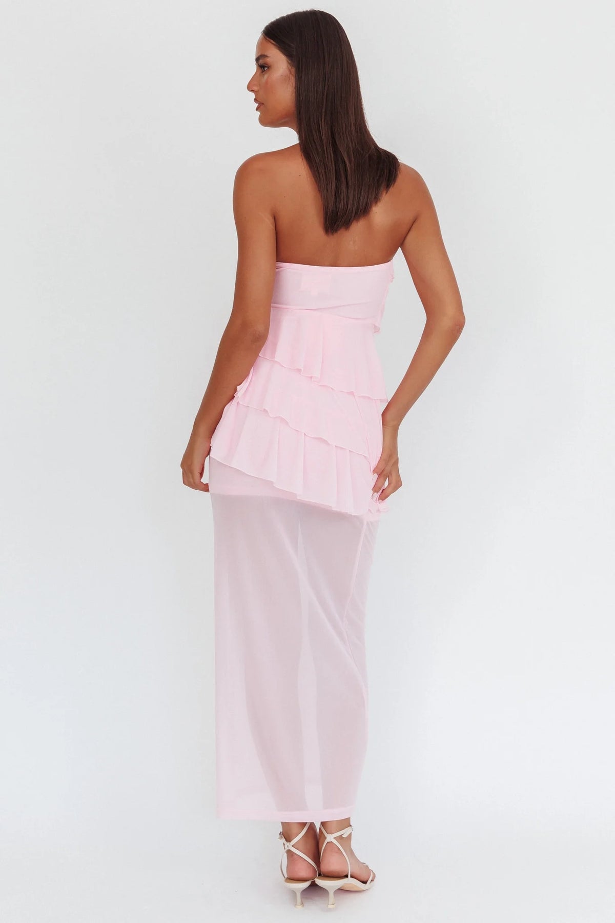 Charming strapless mesh fabric layered with ruffled edges and side slits Homecoming Dresses