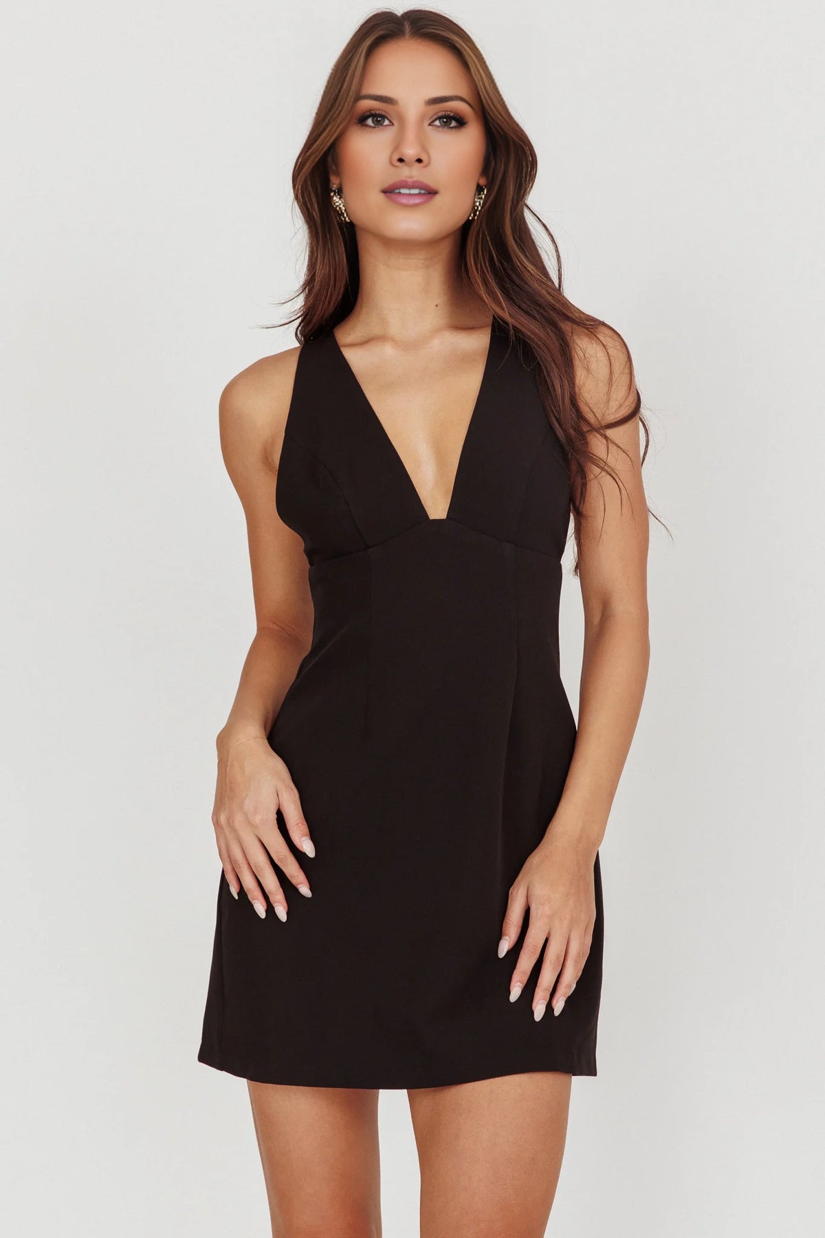 Classic A-line mini deep V-neck adjustable cross strap hidden back zipper Homecoming Dresses