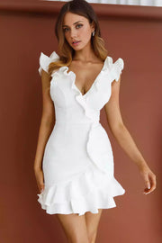 Cute mini unlined ruffled edges with ruffled details, low back strap and zipper at the back, Homecoming Dresses