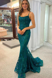 Dark Green Sequins Lace Mermaid Long Prom Dress