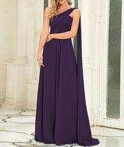 Dark Purple Ruffles Long Prom Dresses For Wholesale One Shoulder Chiffon