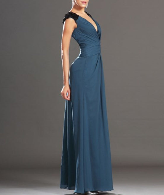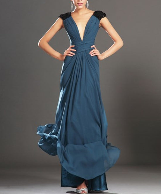 Deep V Neck Sleeveless Sequin Embellished Floor Length Prom Dress