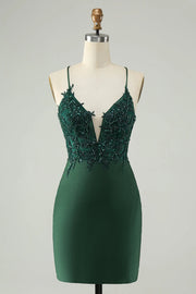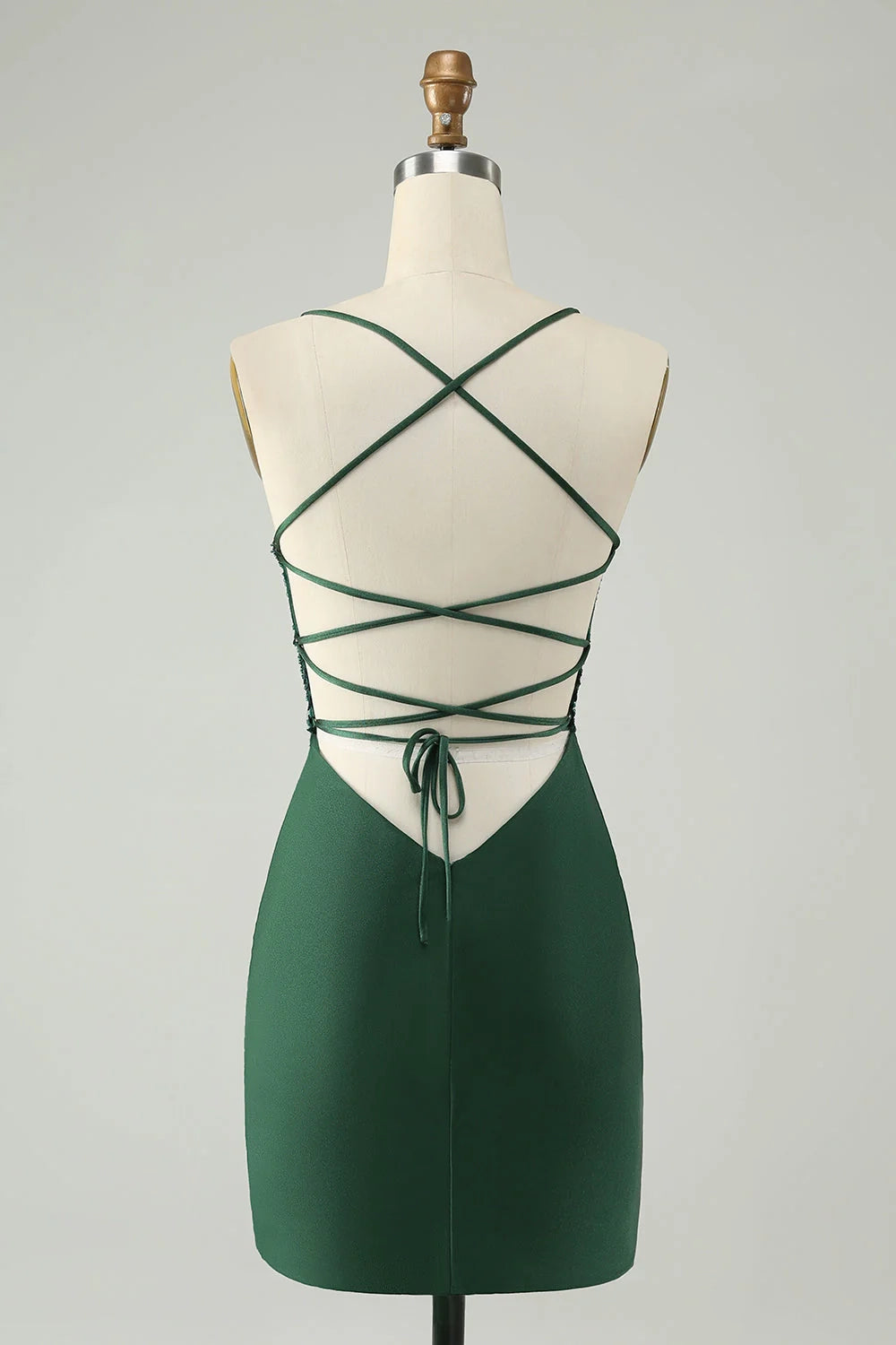 DingJi Wedding Elegant sequin decal tight V-neck bead Homecoming Dresses