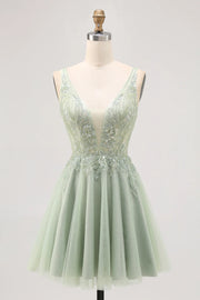 DingJi Wedding Elegant Shiny Chiffon V-neck Beaded Short Homecoming Dresses