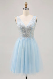 DingJi Wedding Sparkling Beaded V-neck Short Chiffon Homecoming Dresses