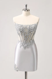 DingJi Wedding Sparkling Off Shoulder Tight corset Flower Tight Short Homecoming Dresses