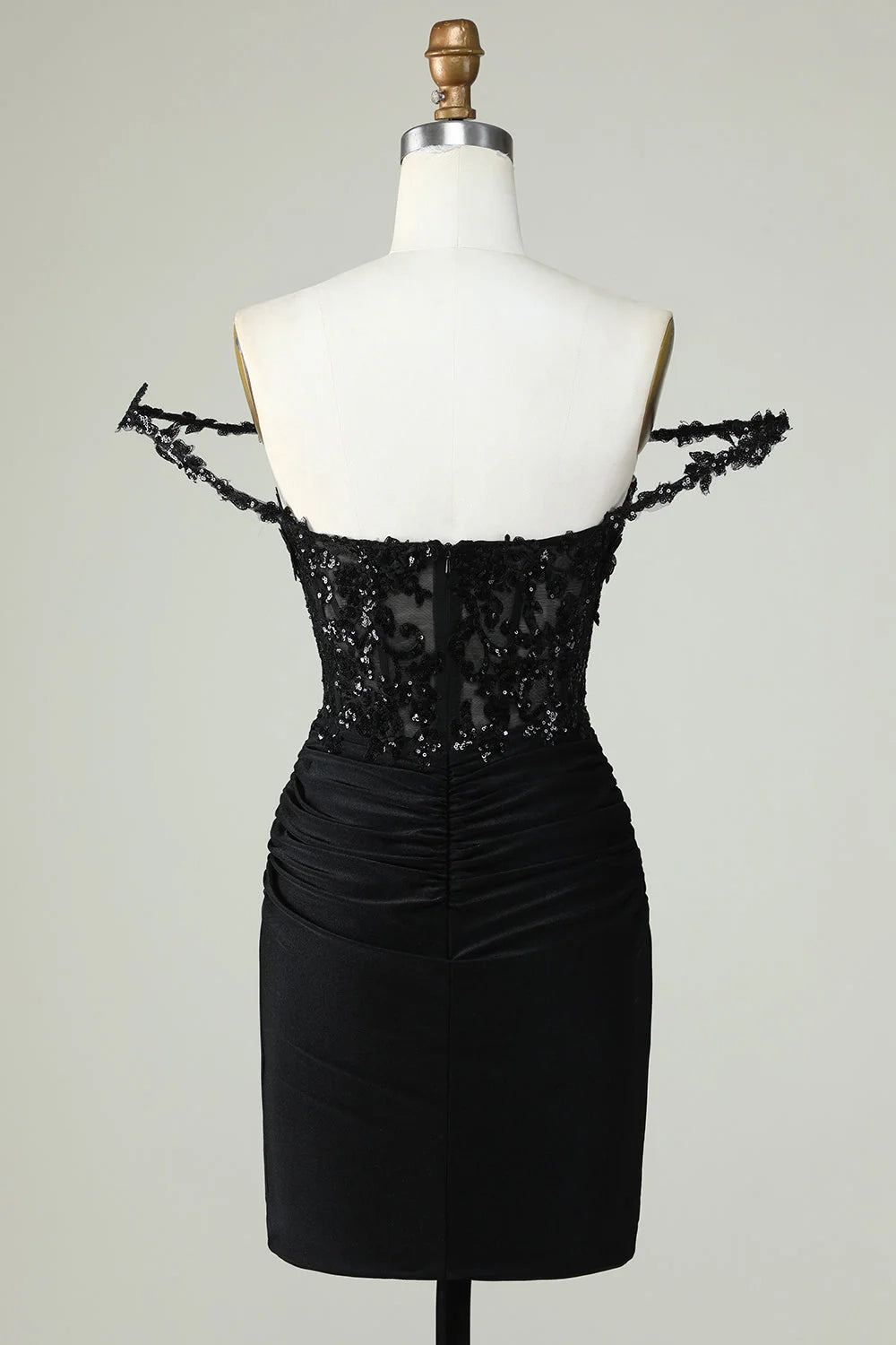 DingJi Wedding Unique Stickers Tight Off Shoulder Short Homecoming Dresses