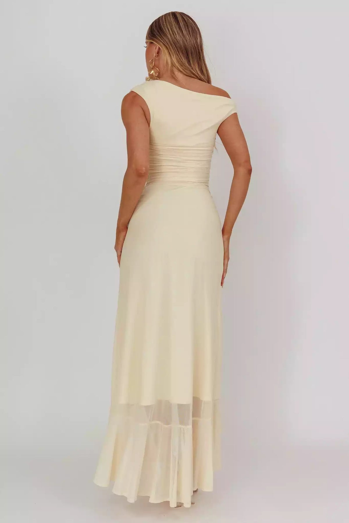 Elegant asymmetrical off shoulder collar with leg slits and side zippers for a cute and charming Prom Dresses