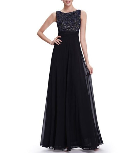 Elegant Black Chiffon A-Line Prom Dress With Embellished Bodice