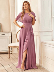 Elegant Chiffon Layered Ruffle Sleeves Mother of the Bride Dress