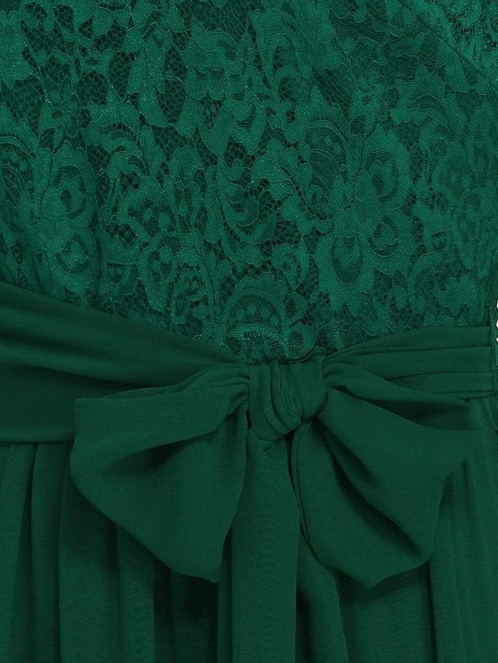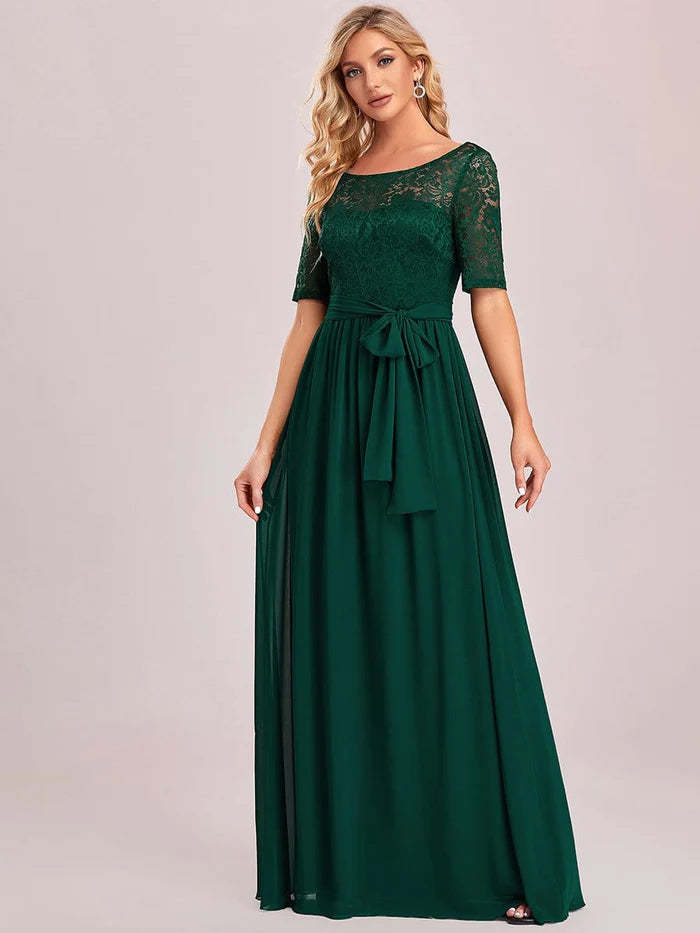 Elegant Short Sleeve Lace & Chiffon Floor Length Evening Dress