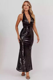 Enchanting sequins, ultra long deep V-neckline, backless neckline, lined with sequins decoration Prom Dresses