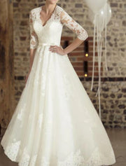 Engagement Formal Fall Wedding Dresses A-Line V Neck Half Sleeve Floor Length Lace Bridal Gowns With Appliques Summer Wedding Party, Women‘s Clothing - US 2 / UK 6 / EU 32