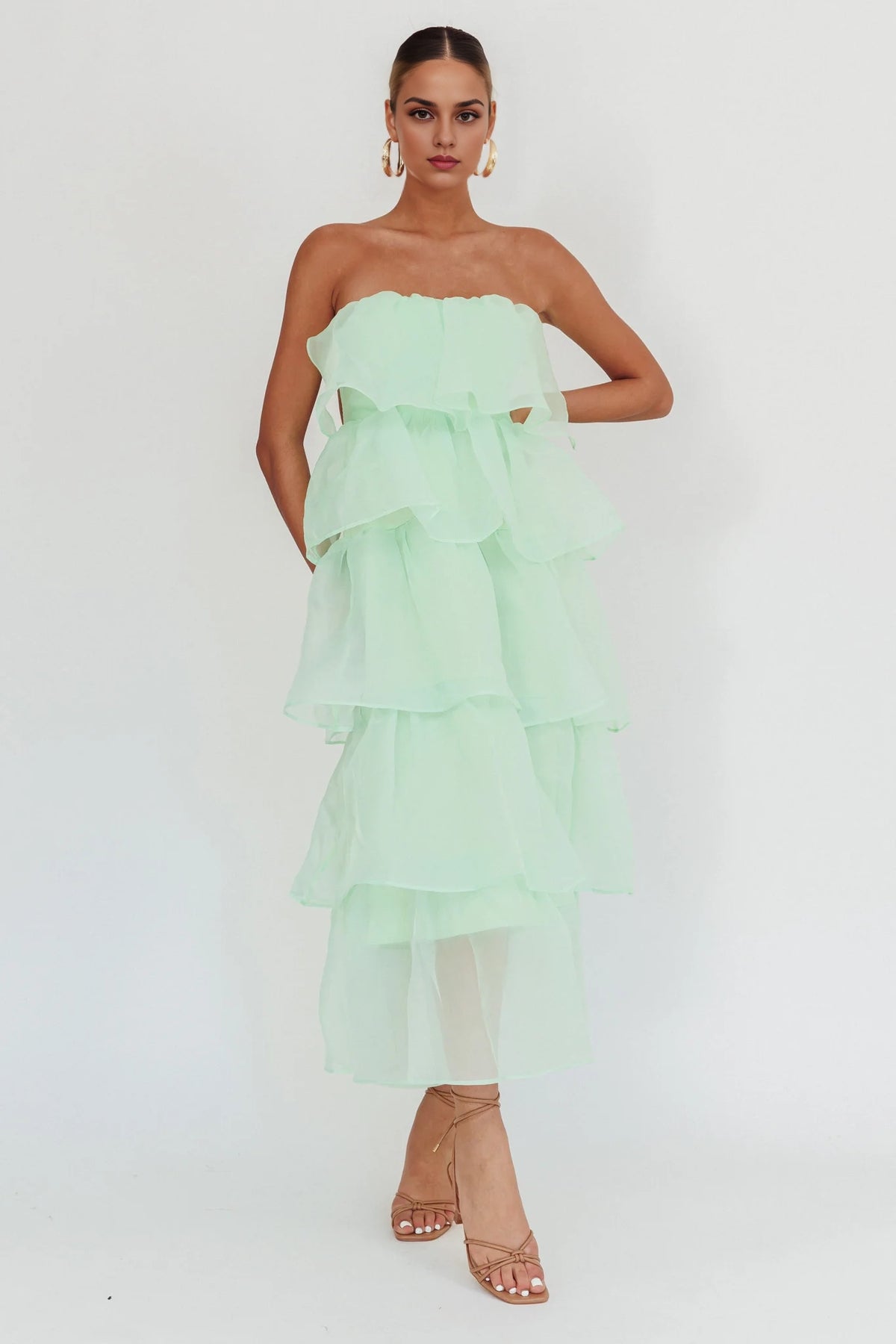 Exquisite strapless layered layered ruffle edges, medium length back hollow out, Homecoming Dresses